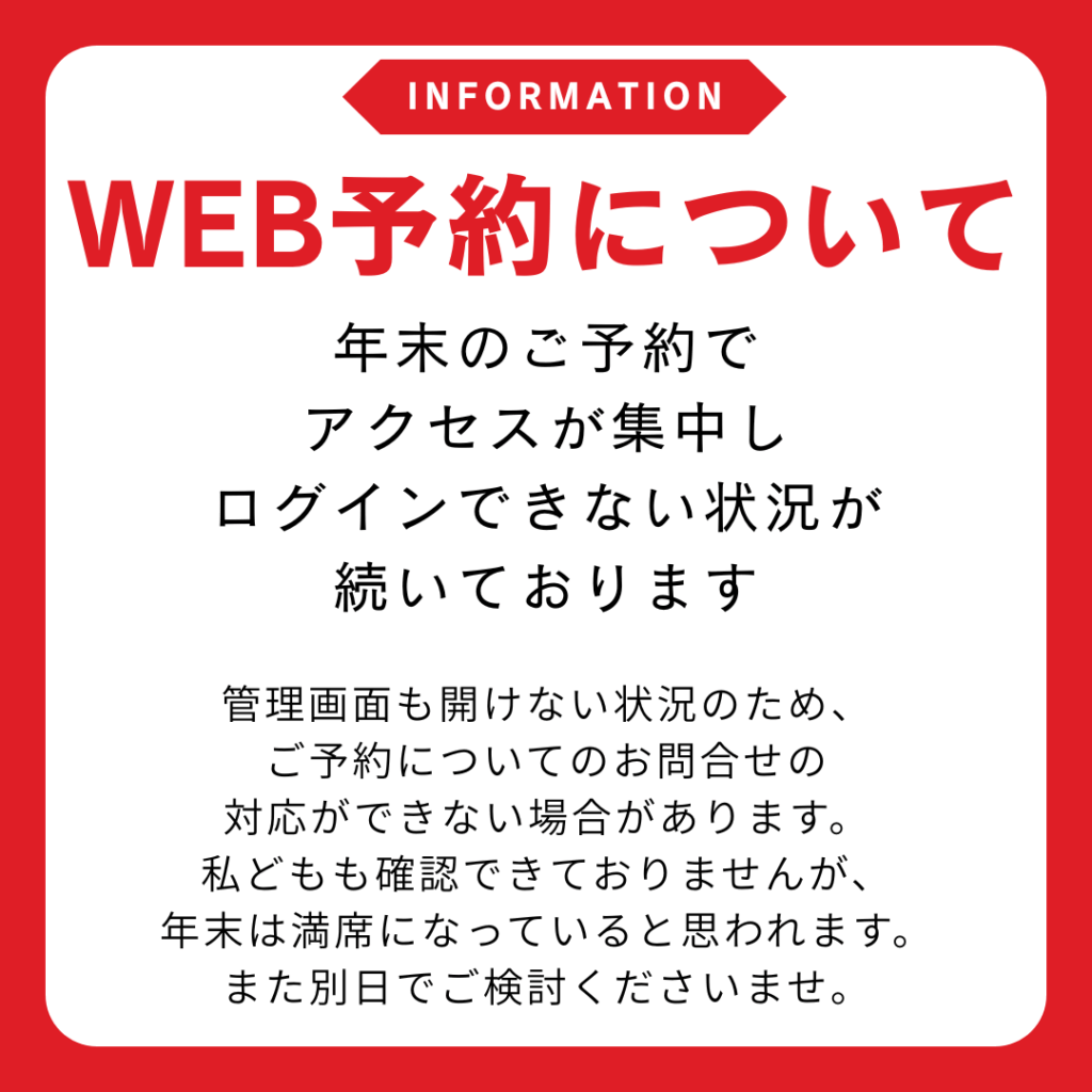【WEB予約】年末のご予約でアクセスしづらい状況です