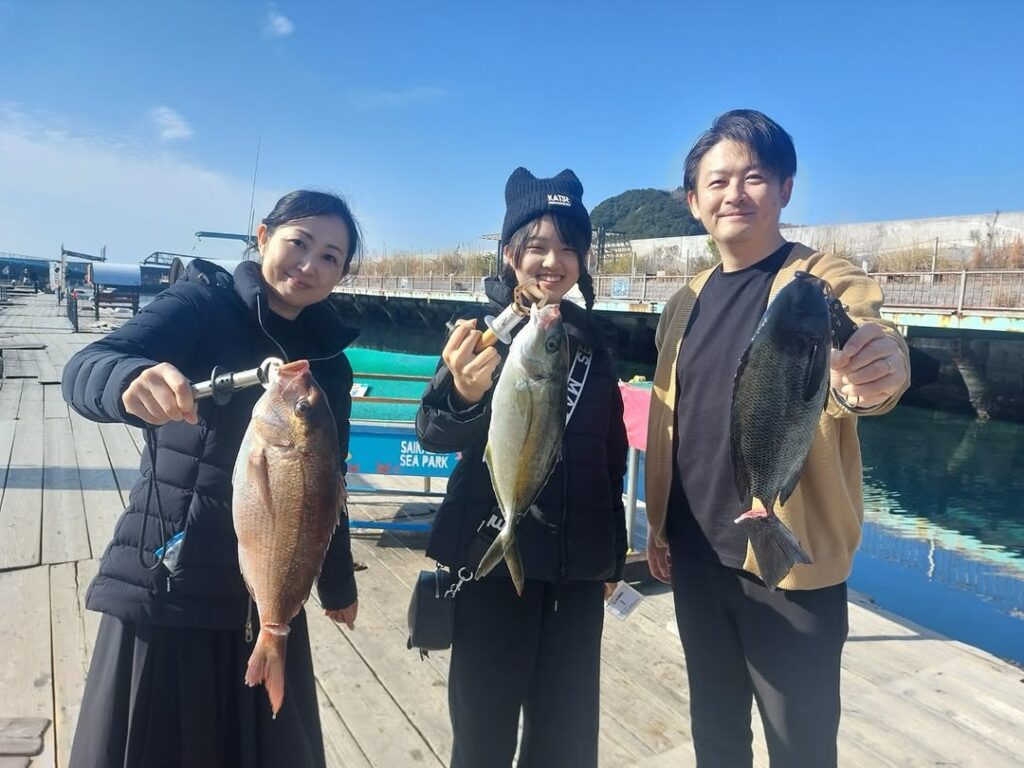 お魚の活性が上がるタイミングはイケスによってバラバラでしたが喰いが全体的に浅いので、合わせるのは少し待ってからがおススメです👍また、ウキの浮力が強すぎると魚がくわえてもすぐに離してしまうのでオモリや餌とのバランスは細かい調整が必要です🧐エサはキビナゴが特によく釣れていましたよ~🎣