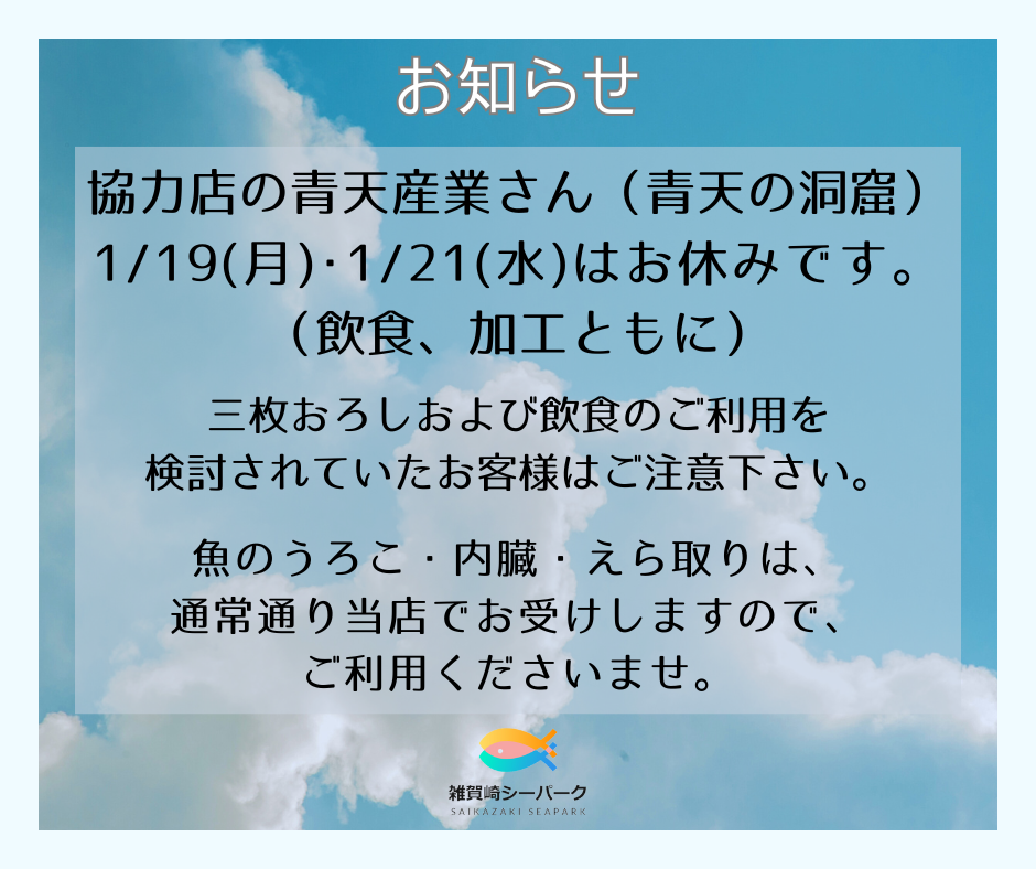 1月19日(月)・1月21日(水)は、三枚おろし等の