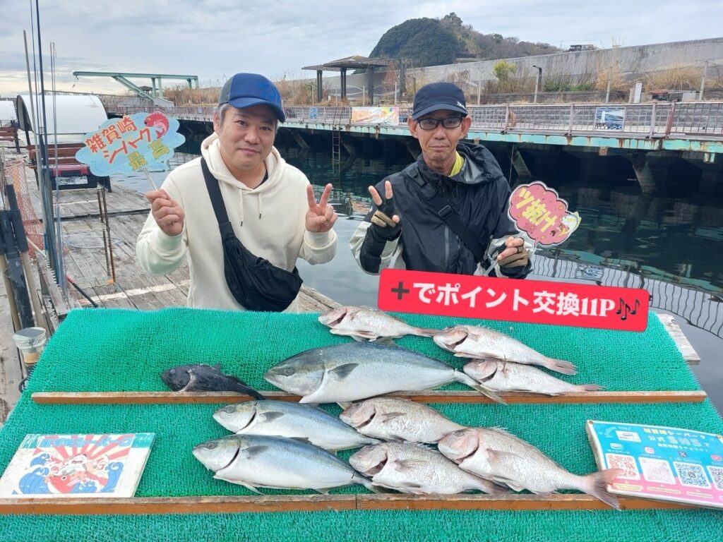 本日もご来店ありがとうございました(*´꒳`*)今日も1つのイケスで青物の活性が上がっていました⤴️⤴️スイッチが入ってはすぐ切れ、また少し時間が経てばかかるといった釣れ方でしたが3人で約10本釣れていました👌フォールや巻き上げに反応していたので、青物の群れが浮いているからといってタナを上げないほうがよさそうです🤔エサの交換などで仕掛けをこまめに投入している方が釣れる可能性が上がりますので、釣れない時間も放置せずに頑張ってくださいね🏋🏻♀️