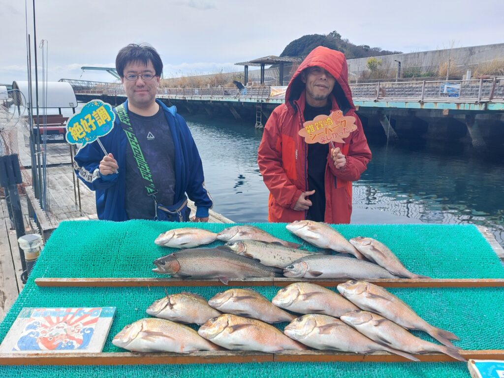 マダイはつ抜けされた方にエサを聞くと黄色に漬けたササミやダンゴとのことでした🤔聞く人によってアタリエサが違うのでバリエーションは多く持っておいてくださいね👍