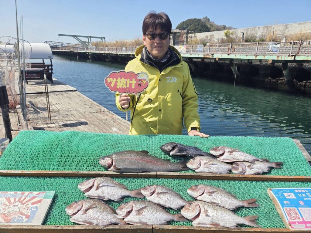 本日もご来店ありがとうございました(o_o)3月も後半に差し掛かってきました‼️海の中はまだまだ冬模様ですがこれからどんどん暖かくなるのを期待しましょう🙏前半はマダイが渋めの印象でしたが、ウロコ取りをしている最中辺りから追加ラッシュでした🎶イケスによってはマダイも偏りが出始めているので、貸切イケスの場合は場所移動してみんなで数を稼ぎましょう🏋🏻♀️一般イケスの方はいい場所が取れるように、運気を上げておいてください🤣笑