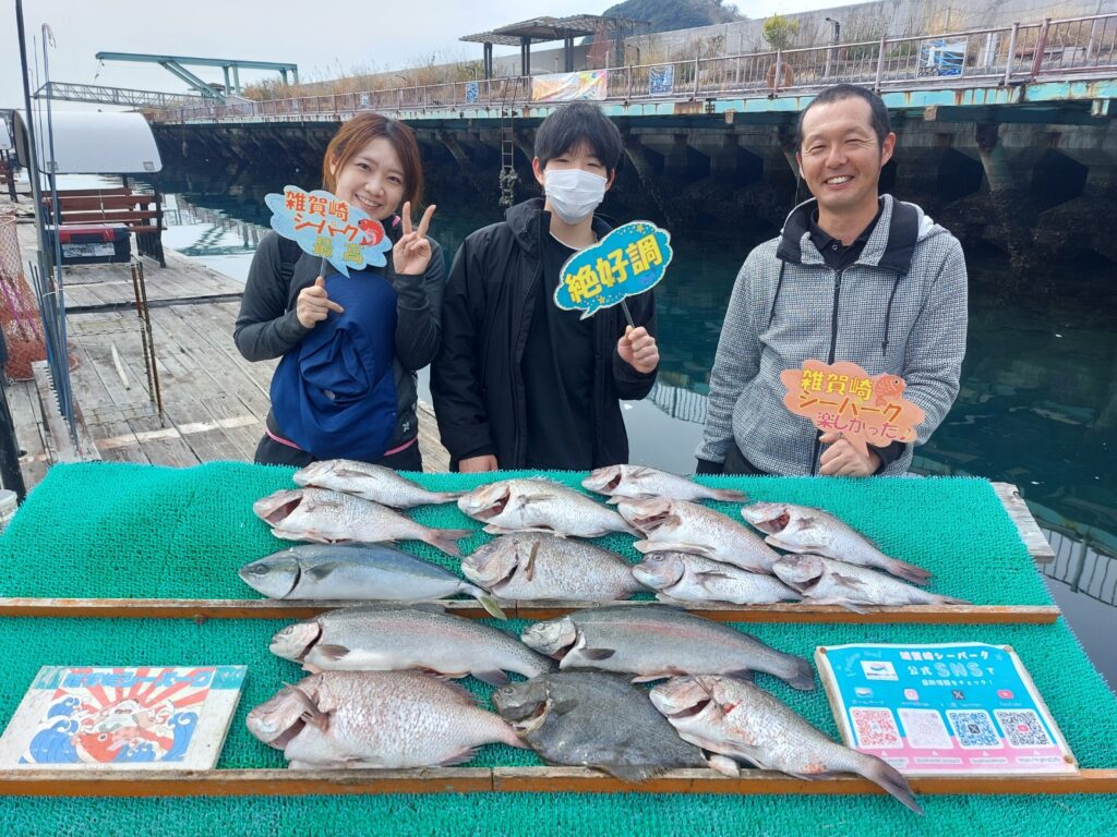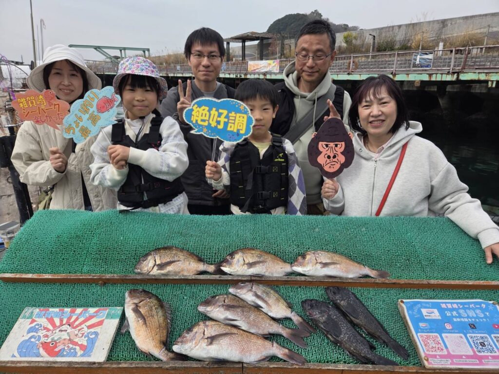 マダイは『ぷくスぺ』や『むきエビ』などで相変わらずよく釣れています✌️角や網際についている子も多いので、足元に泳いでいないかしっかりチェックしてくださいね👀