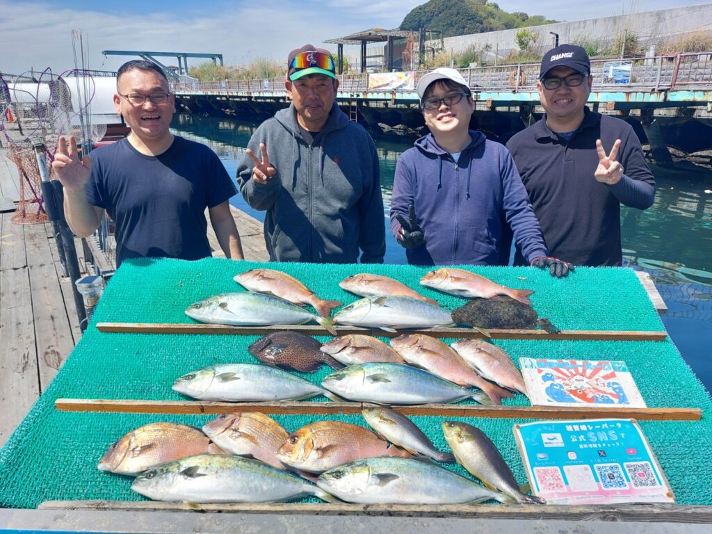 イケスの中で冬の間身を潜めていたフグたちが